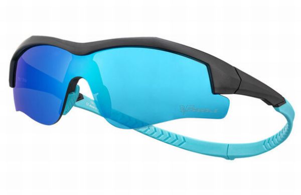 テンプル部分が伸び縮みする顔を覆うようなリングデザイン構造によりフィット感が高い。