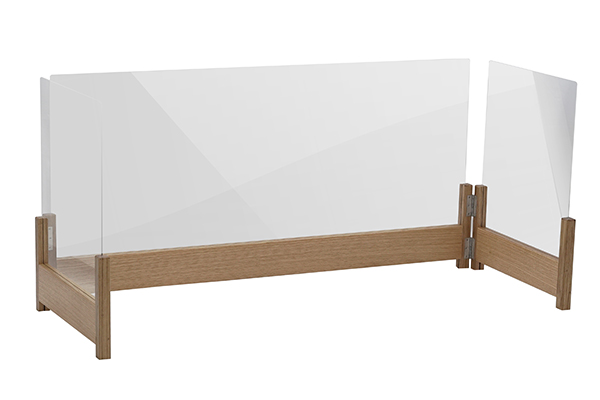 株式会社新宮商行は、北海道小樽市銭函の工場で制作する「OAK Partition」の販売を開始した。高級家具などに用いられるホワイトオーク木材をフレームに使用し、コロナ禍が収束した後でもインテリアの一部として愛用できる“一生モノ”を謳った飛沫防止パーティション。無垢にこだわってデザインされており、プラスチックやシート貼りにはない本物の木の質感が感じられる。