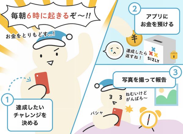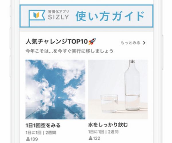 アイザック株式会社は、ユーザーの習慣化をアシストするためのアプリ「SIZLY(シズリー)」をリリースしている。