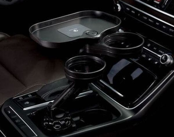 車の運転席横に無線充電・テーブル・ドリンクホルダーを増設できる「マルチホルダー」