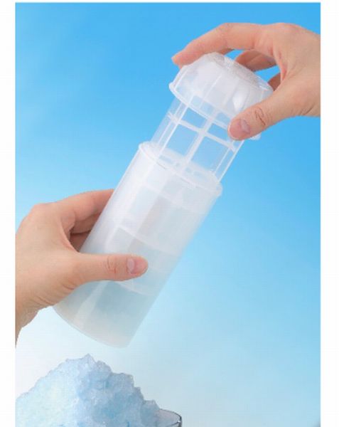 使い方は、「ガリガリ君」を本体にセットしてヘッドキャップをはめて左右に回すと、本体下部にあるプラスチックの刃が「ガリガリ君」を削ってカキ氷ができる。