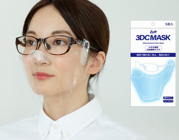 Zoff、メガネに取り付けて飛沫を防ぐ「立体透明マスク」を発売開始