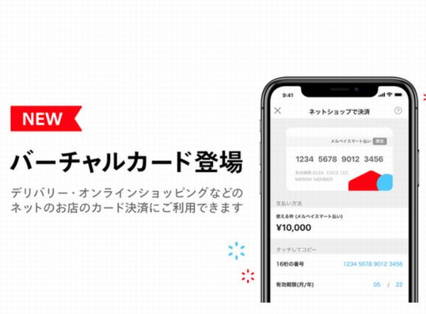 メルペイ、ECサイトでの買い物で使えるクレカ「バーチャルカード」の提供を開始