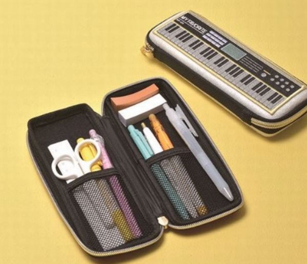 キーボードをイメージした「ペンケース(ホワイト/ブラック/レッド)」1,650円(税込)はサイズは幅20.0×高さ7.5×奥行き3.5cmで、180度開くのでペントレイとしても使える。
