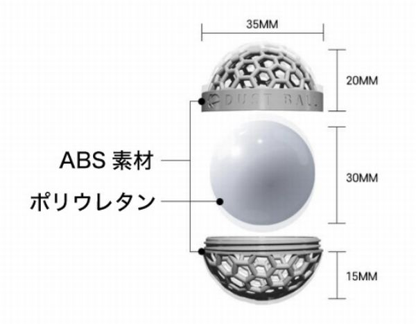 ボールは穴開きのハニカム構造の外郭で覆われ(ABS素材)、ケースの中には粘着力を備えたボールが備わり、ゴミを吸着して内部に溜め込んでくれる。