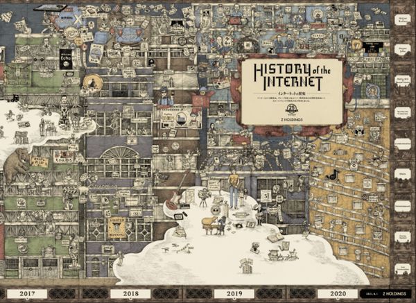 Yahoo!、サービス開始25周年記念に「インターネットの歴史を振り返る絵巻物」に5年分を追加