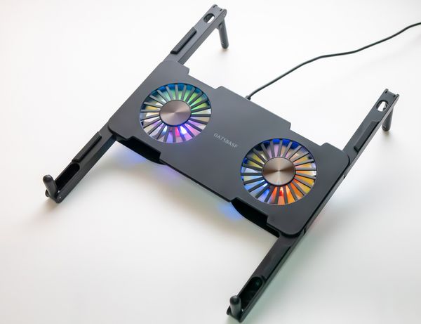 使用時は、スタンドでノートパソコンを浮かせ、回転する2つのファンで底面吸気して風を送ることでノートパソコンの熱を下げ、熱暴走によるCPU機能低下などを防げる。