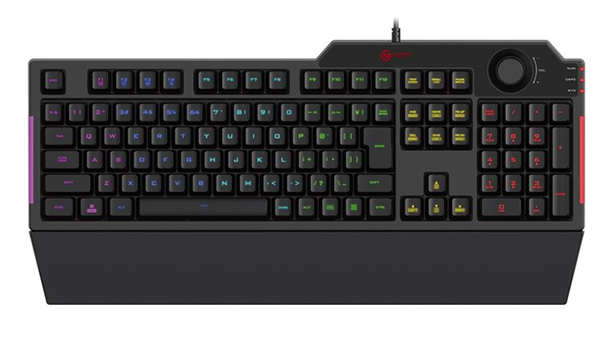 ライティングのカスタマイズのほか、本製品のもう1つの大きな魅力は、直感的に操作できるロータリー式ボリュームツマミが本体に実装されていること。この“ツマミ”によって、ボリューム操作をスピーディーに行える。また、本製品には取り外しできるリストレストも付属。さらに、誤って水などの液体をこぼしても、裏面に水抜き穴からすぐに液体を排出できる排水機能が用意されている。