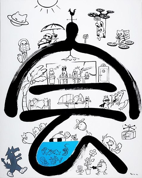 本展では、古美術との書作品コラボレーションや、アニメフィギュアとのアート作品コラボレーションといった試みもあり。「カワイイ!」オリジナルアバターキャラクターの瞑想ラビット、座禅ドウドウ鳥などの作品も展示される。入場無料で、開館時間は10:00~17:00(最終日は15:00閉館/入場は閉館30分前まで)。