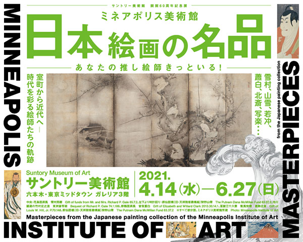 2021年4月14日(水)から6月27日(日)まで、サントリー美術館にて「ミネアポリス美術館 日本画の名品」が開催される。同美術館の開館60周年の記念展としての開催。作品保護のため、会期中に展示替えが予定されている。