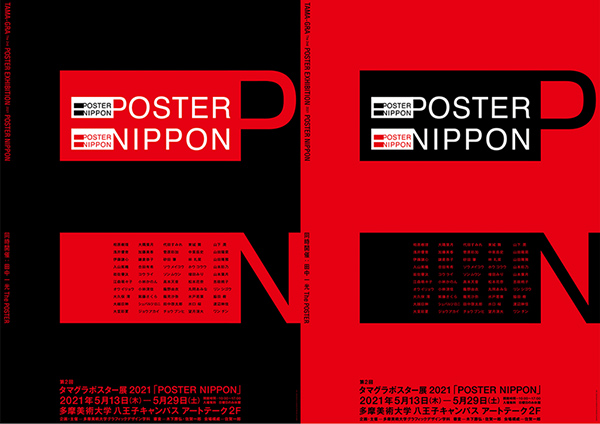 2021年5月13日(木)から5月29日(土)まで、多摩美術大学八王子キャンパス内のアートテーク 2Fにて「第2回タマグラポスター展 2021 POSTER NIPPON」の開催が予定されている。入場無料、日曜休館で、時間は10:00〜17:00。同大学のグラフィックデザイン学科の学生が「JAPAN」「日本」「NIPPON」のいずれかを表記することだけを条件に自由な発想で制作した作品が紹介され、学内審査を経て選ばれた50点の優秀作品が展示される。