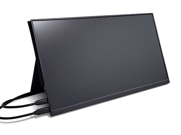 ノートパソコンのセカンドディスプレイとしてテレワークなどにも使いやすく、持ち運びに便利なカバースタンドも付属。カバーとスタンドが一体となっており、持ち運びの際には画面を保護し、使用時には最低限のスペースでディスプレイを自立させることができる。本体サイズは183.1(幅)×8.7(高さ)×304.2(奥行)mmで、カバースタンドを除く重量は約334g。製品には本体とスタンドカバーのほかに、USB Type-CケーブルとHDMIケーブルが付属している。