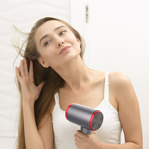通常のヘアドライヤーは熱で髪を乾かすが、本製品はパワフルな風量と風速で乾かし、温度制御センサーも用意されていて、髪に熱のダメージを与えにくいことが特徴。100,000rpm駆動のモーターを搭載し、14m/sの最大風量が実現されている。送風温度は熱風(HOT)と冷風(COLD)の2段階、風量は高速/低速/セットの3段階での調節に対応。セットノズルの部分はマグネット式で、簡単に取り外しができるように設計されている。