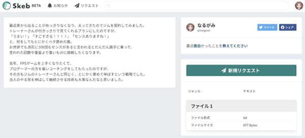 さらに、「Skeb」は新たにテキスト(小説)の納品にも対応した。具体的にはTXTファイルとPDFファイルに対応し、小説のほか、レビューや質問に対する回答を納品するような活用方法も想定されている。