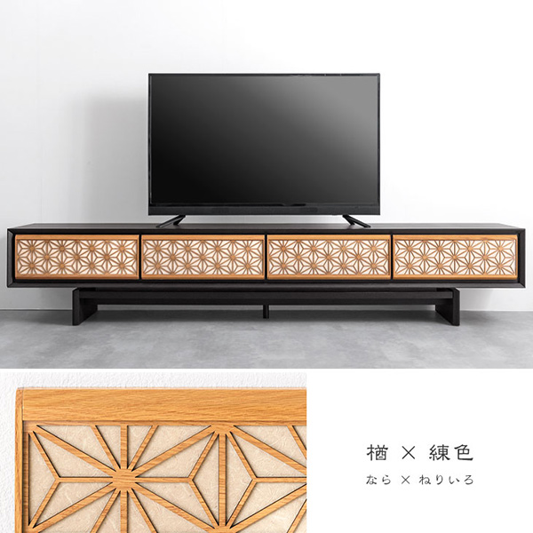 タンスのゲン株式会社は、2サイズ展開で「組子風デザイン テレビ台」を発売した。希望小売価格は各168,000円(税込)の240cm幅モデルと、各128,000円(税込)の180cm幅モデルを用意。それぞれのサイズで、楢×練色、楢×墨色、漆黒×練色、漆黒×緋色の各4カラーがラインナップされている。