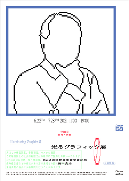 株式会社リクルートホールディングスが運営する「クリエイションギャラリーG8」にて、2021年6月22日(火)から7月28日(水)まで、田中良治氏の個展「光るグラフィック展 0」の開催が予定されている。第23回亀倉雄策賞の受賞記念展。入場無料、日祝休館で、開館時間は11:00~19:00となっている。