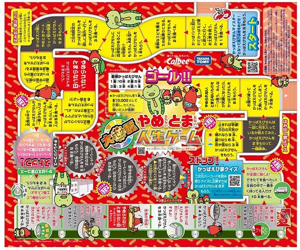 なお、同社では「かっぱえびせんの日」を前にした別企画として、株式会社タカラトミーによる「人生ゲーム」とコラボレーションした「やめとま人生ゲーム特大レジャーシート」のプレゼントキャンペーンも8月2日(月)の9:00から実施(https://www.calbee.co.jp/kappaebisen/wakuwakuyametoma/)。対象商品の購入レシートで特設Webサイトから応募でき、抽選で5,000名に当たる。商品1袋につき1口応募で、対象商品は「85gかっぱえびせん」「85gかっぱえびせん(コンビニエンスストア限定デザイン)」「65gCRAFTasteかっぱえびせん」。応募期間は2021年10月16日(土)の23:59までとなっている。