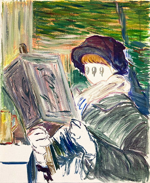 名画を引用・抽象化したイメージを描く飯田美穂氏の個展「1QQ1/本をよむ絵、しるしを所有するもの」