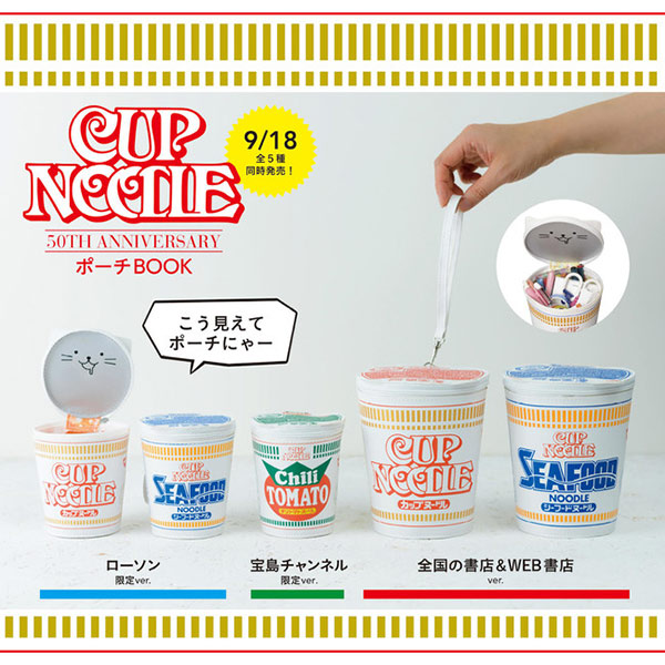 株式会社宝島社は、2021年9月18日(土)に「CUP NOODLE 50TH ANNIVERSARY BOOK」シリーズ5種を発売する。日清食品株式会社とのコラボレーションによるアニバーサリーブックで、「カップヌードル」の発売50周年を記念したもの。この本の限定アイテムとして、「カップヌードル」とそっくりのポーチが付いてくることが発表されている。