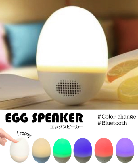 本製品は、卵の形のデザインのスピーカー。中央の電源ボタンでライトが点灯し、さらにボタンを押すことで4段階までの調光に対応する。LEDライトの色は全部で6種類。タッチするたびに色が変わり、部屋のインテリアやその時々の気分に合わせて好きなカラーを楽しめる。