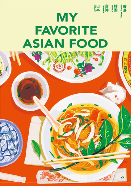 さらに、この展覧会に合わせて作成された書籍「MY FAVORITE ASIAN FOOD」(LLCインセクツ)も販売。この書籍には60名のイラストと新人作家のTOKO氏による短編“食”小説の書き下ろし作品が収録されている。通常カラー版と特別カバー入り版があり、ケースの絵柄は4種類。