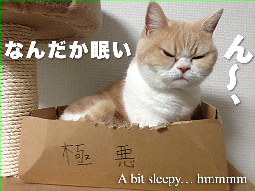 6月14日生まれ。穏やかな優しい性格で、ちょっと運動音痴。子猫のころは、まんまるのクリクリな瞳だったが、大人になるにつれ極悪な顔になっていく。でも、怒ってなどいない。好きなものはじゃらしおもちゃ、昼寝、なでられること。イスの上で寝るのがお気に入り。