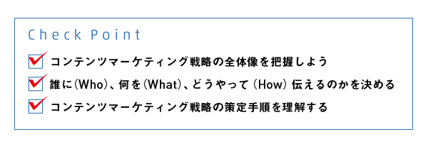 いざコンテンツマーケティングを取り入れようと思っても、はじめての人はどこから手をつけてよいか見当がつかない人も多いかもしれません。今回は本書のChapter2「コンテンツマーケティングの始め方」より、コンテンツマーケティングの戦略の立て方の概要について見ていきましょう。