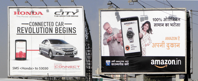 インドの経済の中心地であるムンバイのビルボード広告では、ホンダもハイブリッドのようなエコ技術ではなくスマートフォンとつながることをアピールし、急速に進行するモバイル化を睨んでアマゾンもブラウザではなくアプリを介したeコマースの普及に注力している
