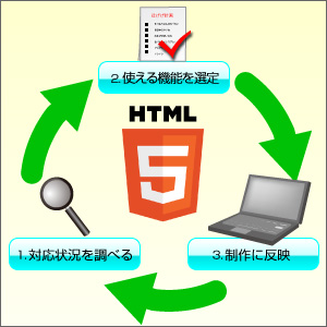 これらを参考にしつつ各スマートデバイスの対応状況に応じた機能を選択しながらHTML5 Webサイトを制作していく。そうすればスマートデバイス向けの本格的な「クロスブラウザ HTML5 Webサイト」をつくることが可能だ。「対応状況を調べ」→「使える機能を選定し」→「制作に反映する」この中での試行錯誤が現時点でのHTML5制作では重要になる。この作業に繰り返し慣れる意味でも、HTML5 Webサイト制作は早めに実践してみることをおすすめしたい。
