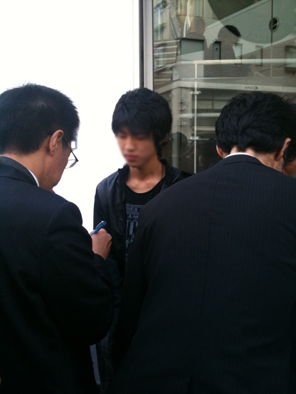 (7:35)30分前、報道規制始まった (7:35)同じ原宿のauでは、先頭に並んでいた人がインタビューを受ける