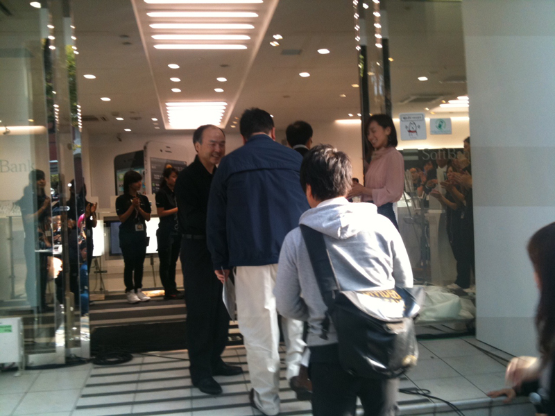 (9:35)ついに最初に並んだ人が出てきました (9:30)こちらは渋谷のソフバンショップ。並んでいます