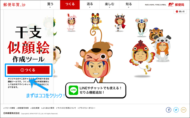 2015年もそろそろ終盤。新しい年を迎えることになる。年末と言えば、お世話になった方への年賀状の準備をする季節になる訳だが、構想やデザインはもうお決まりだろうか。もしこれまでの年賀状作成において、インパクトが足りないだとか、センスにかけるだとかお悩みの方がいれば、ぜひチェックしていただきたいツールがある。日本郵政がフリーで提供している「干支似顔絵作成ツール」だ。いくつかの年賀状に関するツールを提供している日本郵政だが、今回は中でもアイディアが光る干支と似顔絵をコラボさせたおもしろツールを紹介する。
