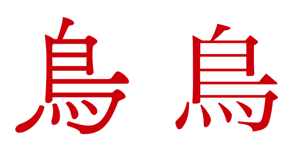 「たとえば“鳥”という文字に注目したときに、ヒラギノ明朝と筑紫Q明朝では全く違うことが一目瞭然です。ヒラギノ明朝のほうが自然なバランスで、筑紫Q明朝は上部をキュッと絞った“クセ”のあるデザインに仕上げられています。もちろん、どちらの書体が良い悪いという話ではなく、このような違いに注目していくと面白いですよね。そこに気づいて書体での“情緒表現”に生かすことが大切なんです」(関口さん)