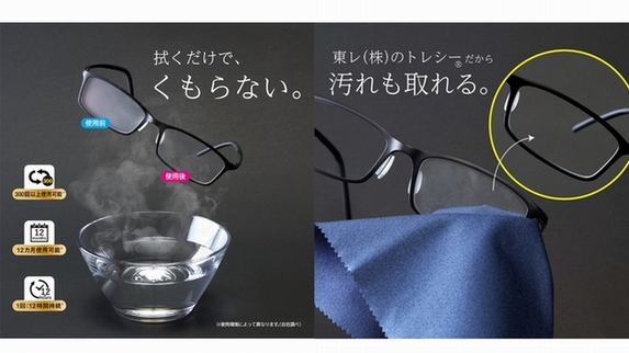 東レ株式会社は、拭くことでメガネがくもることを防止できるクリーニングクロス、トレシー「メガネくもり止め」について、本格販売を開始すると発表した。価格は1枚968円(税込)。