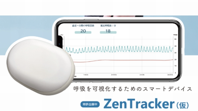 株式会社コトは、呼吸のリズムを視覚化するスマートデバイス「ZenTracker(仮称)」を開発(特許出願中)したと発表した。