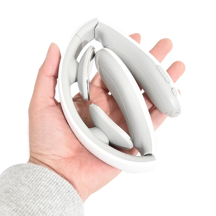首の後ろの部分に2つの金属板があり、さまざまな形状にフィットする設計。プレートがぴったりと首に沿うため、しっかりと温まる。また、未使用時には本体の折りたたみも可能。コンパクトに収納し、気軽に持ち運んで使える。