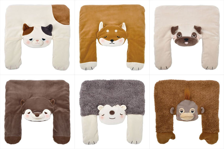 ラインナップは6種類で、「ミケネコのゆず」「柴犬のコタロウ」「パグのハナ」「ハリー」「ウータン」を展開。だらんとした様子だけでなく、動物たちのリラックスした雰囲気の表情もかわいらしい。