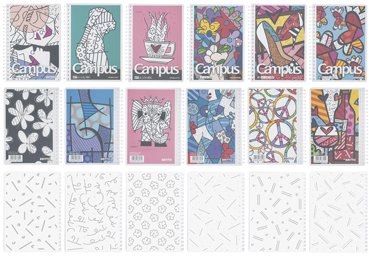 今回発売されるコラボレーション商品には、B6サイズで無線綴じ方式の「ROMERO BRITTO キャンパスノート」と、独自の“やわらかリング”を採用した同じくB6サイズの「ROMERO BRITTO ソフトリングノート」を用意。それぞれ6柄のバリエーションで、計12アイテムのラインナップとして展開される。