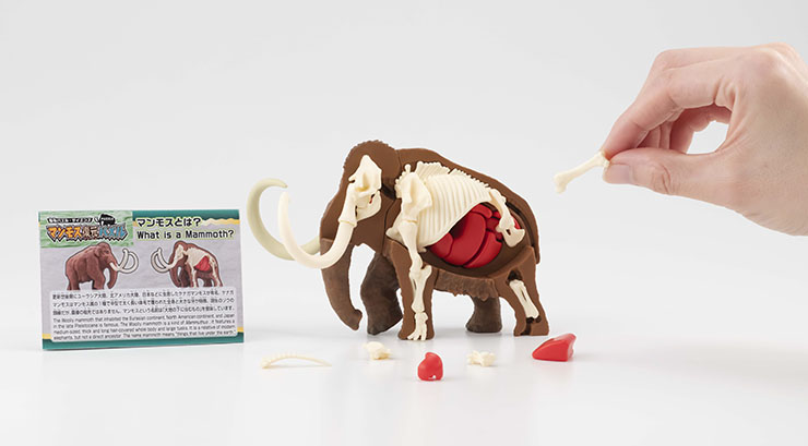 「マンモス復元パズル」は、全37パーツで構成されたパズル。「解体パズル・サイエンス」シリーズ第3弾として登場する。「骨パーツ」と「体・内臓パーツ」を組み立てるとマンモスが完成する。立体なので、組み立てる過程を通してマンモスの体の構造について理解を深められる。大腿骨パーツに肉パーツをセットすると「マンモスの肉」が作れる遊び心も。