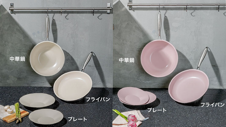 「ビオ・セラミックフライパン」のサイズは26cm。また、中華鍋(28cm)とプレート(22cm)も取り扱う。