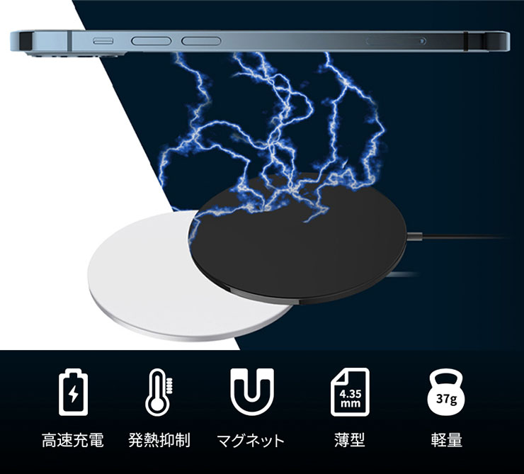 「ウルトラパワーワイヤレス充電器」は、軽くて携帯しやすい設計。Type-Cコネクタを採用しているので、30W以上のACアダプターを使用することで高速充電に対応する。コネクター部分にはLEDランプを搭載しており、高速充電時はLEDランプが常時点灯し、そうでない充電の場合はLEDランプが点滅する。