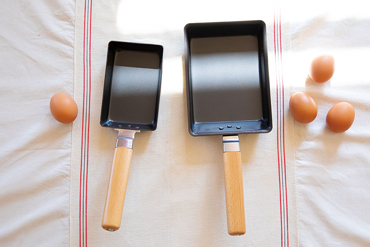 「【茅乃舎ノ道具】茅乃舎別誂え 玉子焼き器 鉄製」は、鍋底2mmの仕様で美味しく焼き上がる鉄製の玉子焼き器。ガスだけでなくIHにも適した機能性を備えており、焦げ付きにくいエンボス加工を施している。蓄熱性に優れ、高温に強い。国産の木材を採用しハンドル部分が手に馴染みやすく、使い込むほど油が馴染んでいくなど使いやすさに配慮した設計となっている。