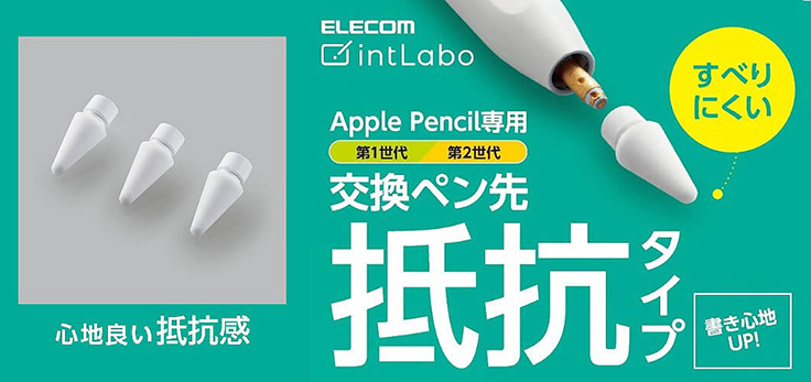 本製品は、Apple Pencilの第1世代と第2世代に両対応。エレコム株式会社では、これまでにApple Pencil専用の交換ペン先として、金属ペン先の「P-TIPAP01」や、純正ペン先と同じ形の「P-TIPAPY01CR」を発売しているが、今回のモデルは「通常のペン先ではガラス面の滑りやすさが気になる」というユーザーに、特に適している。