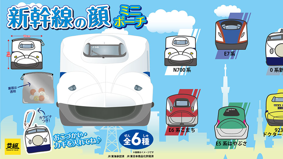 イエロー株式会社は5月17日、「新幹線の顔ミニポーチ」の発売を発表した。新幹線がモチーフのミニポーチがカプセルトイで登場。8月下旬より、300円で販売する。
