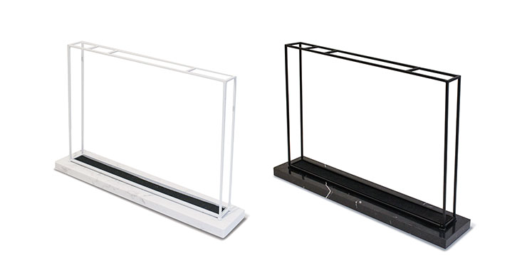 「Scenario umbrella stand(シェナーリオ アンブレラ スタンド)」は、シンプルかつ重厚感のあるフォルムで上品さが漂う。ベースには高級感のある天然の大理石を使用している。スリムな幅で、場所をとらずに設置できる設計。滑り止めのシートが付属しており、傘の先端が滑らないように工夫されている。水受けトレーと滑り止めシートは取り外し可能で、掃除がしやすい構造。
