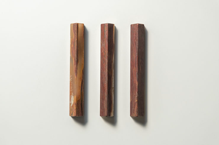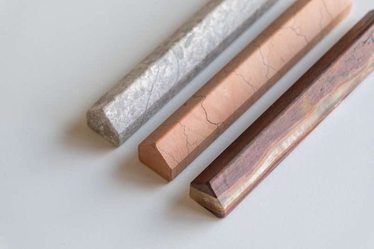 「tayfull カトラリーレスト」は、昨年の夏に発売したカトラリーレストから新色「ロッソ」「オニックス」が登場。家具や建築用の資材として、ヨーロッパから石材の産地山口県美祢市に入ってきた大理石の”端材”を使用している。希少で数に限りがあるため数量限定での取り扱い。