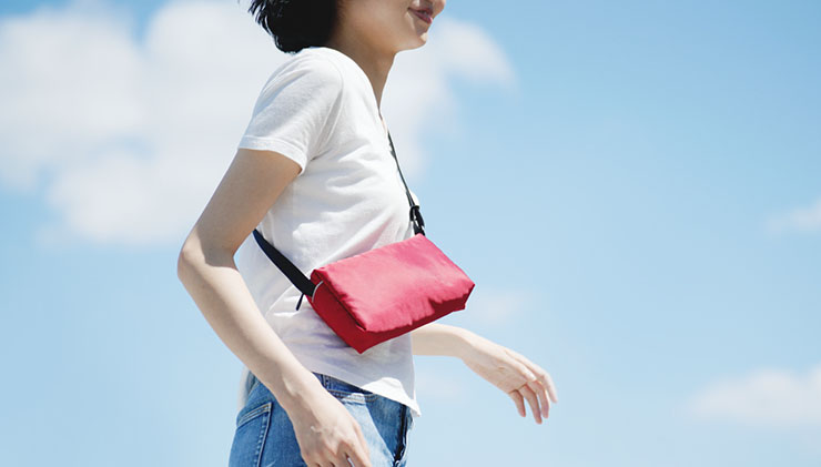 「ミニショルダー」は、貴重品を入れる機能に絞ったデザイン。軽量設計なのでポケット感覚でスマホや貴重品を入れて軽やかに動き回ることができる。中に入れたものが一目でわかる横長・浅型。端から端まで大きく開く開閉しやすいファスナーを搭載している。肩に負担がかかりにくいショルダーストラップが付いているなど使いやすさを追及している。
