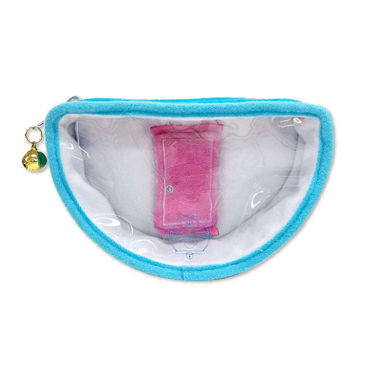 「ドラえもんの四次元ポケットポーチ」は、中にひみつ道具のマスコットが見えるポケットポーチ。メイク用品や小物などを入れて持ち歩ける。透明な表面にはドラえもんのイラストを配している。チャームはかわいい鈴の形をしている。