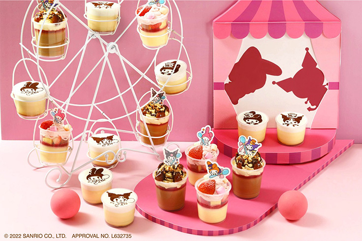 「マイメロディのメリーゴーランドプリン」は、「なめらかプリン」にスポンジとイチゴをあしらい、甘酸っぱいイチゴクリームとカラフルなマシュマロで仕上げた商品。「クロミのサーカスプリン」は「なめらかなチョコプリン」がベースで、アクセントのフランボワーズソースやマロンクリームで仕上げられた。「メリーゴーランドプリン」と「サーカスプリン」には、サーカスとハロウィンをモチーフにしたピックが付いている。