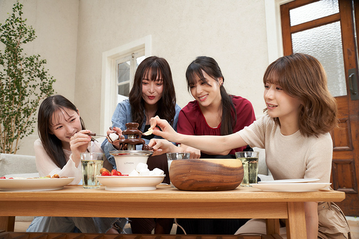 本製品では、ビュッフェで見かけるような「チョコレートフォンデュのタワー」を実現できる。フォンデュソースが上から自動で滝のように流れて循環する楽しい仕組みで、チョコレート以外にチーズフォンデュやハニーフォンデュ(はちみつ)やカレーフォンデュなどに使うことも可能。チーズフォンデュの場合には市販のチーズフォンデュソースやスライスチーズを溶かしたものでは上手く流れないことがあり、「ハインツチーズソース」の使用が推奨されている。